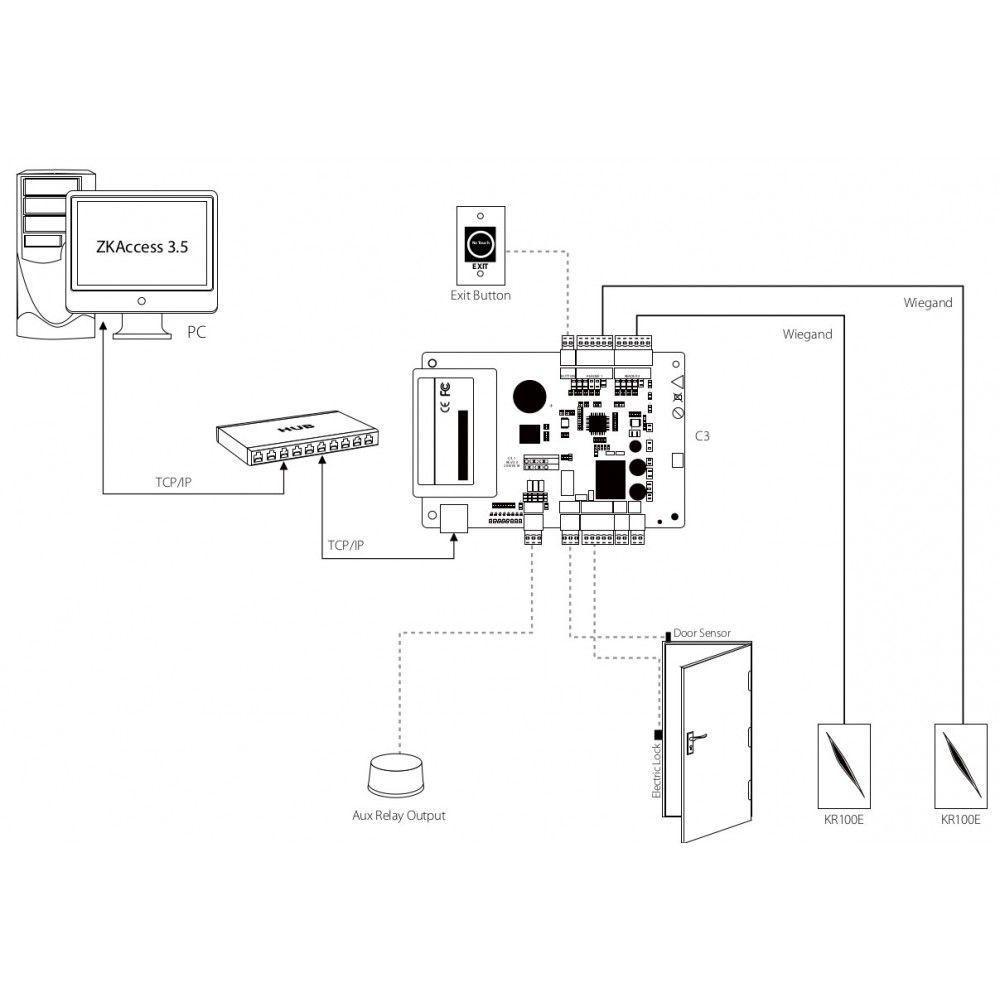 Contrôleur d'ouverture 1 porte permettant de contrôler l'ouverture d'1 accès, il compatible avec les lecteurs ZK KR100E et KR102E. Ce contrôleur permet de sécuriser votre installation. Le contrôleur s'installe à l'intérieur. En cas d'arrachage de la pointeuse/serrure/lecteur le contrôleur Wiegand contrôle la gâche et bloque l'ouverture de la porte. Le contrôleur fonctionne avec le logiciel ZKAccess3.5. Le logiciel vous permet de créer vos utilisateurs (par code et/ou cartes), de gérer les plages horaires de chacun des utilisateurs, de récupérer les évènements d'historique de passage. Idéal pour la gestion d'un accès à une porte d'entrée d'entreprise, à une salle de sport ou tout autre accès nécessitant une restriction des accès.