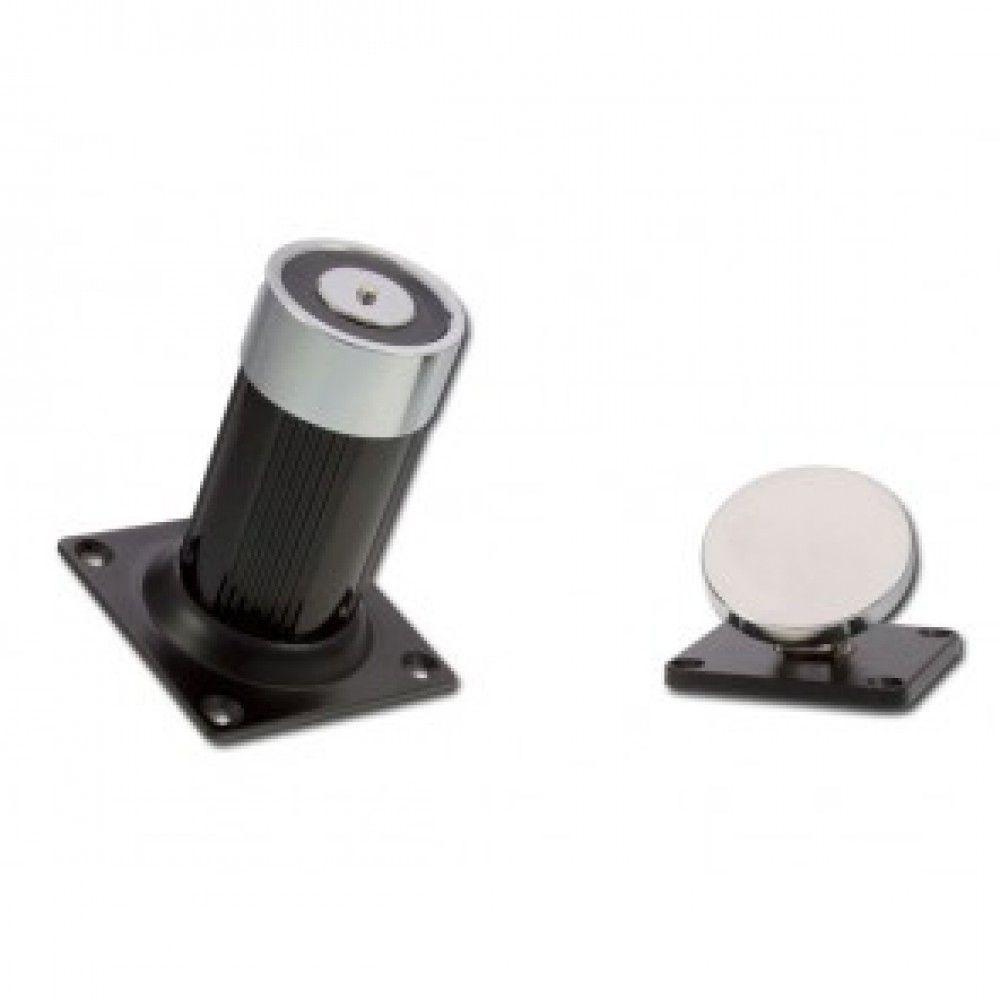 Electro-aimant pour le maintien de porte. D'aspect sobre et discret, ce système s'installe facilement et rapidement sur une porte existante. L'électro-aimant est silencieux.