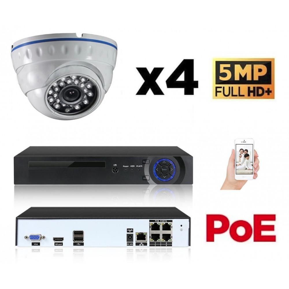 Kit vidéo-surveillance 4 caméras dome IP FullHD+ 5Mp POE