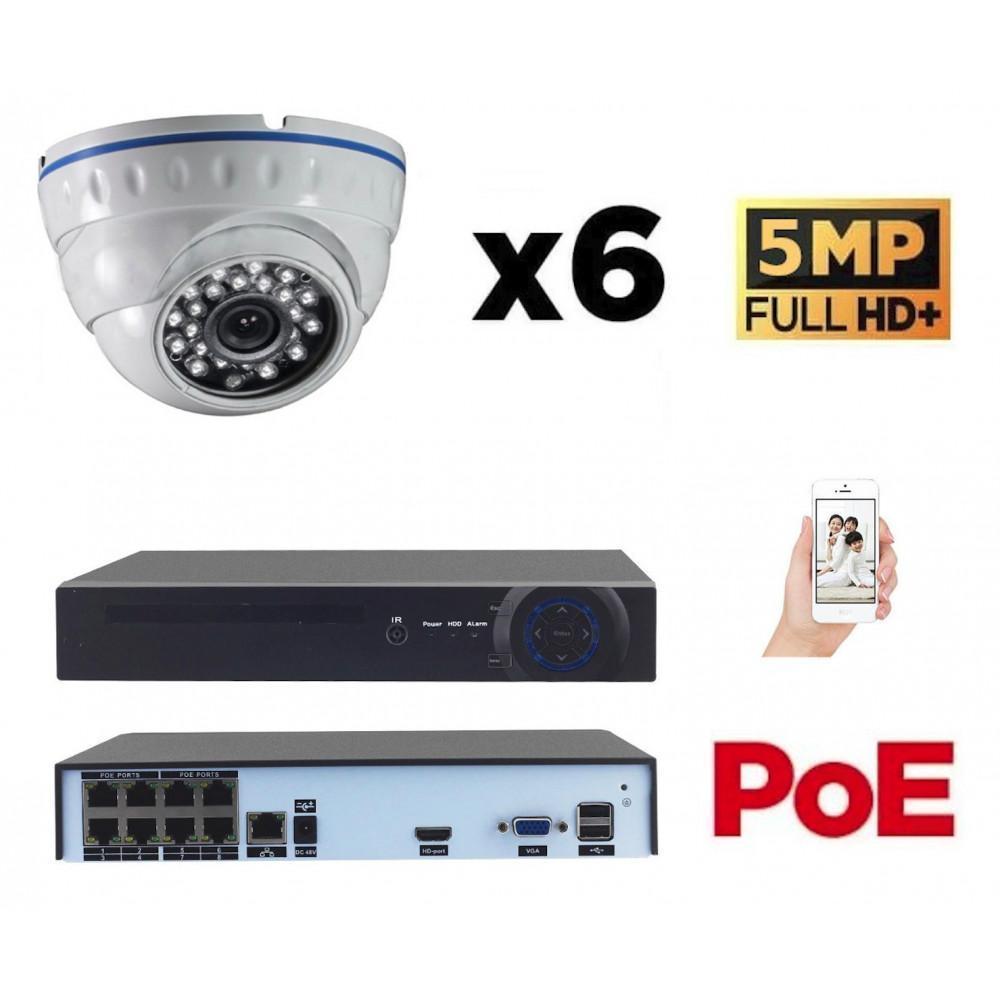 - 6 caméras dome, vision de nuit 30 mètres, angle de 105°