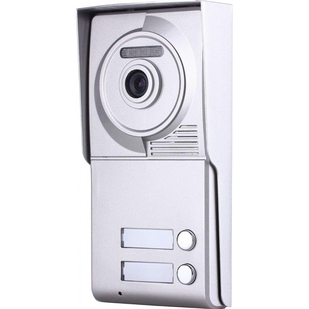 Platine de rue 4 fils pour 2 appartements, dotée de 2 boutons sonnettes distincts. La platine de rue peut fonctionner avec une gâche électrique à émission ou avec une ventouse électromagnétique en ajoutant un relais.