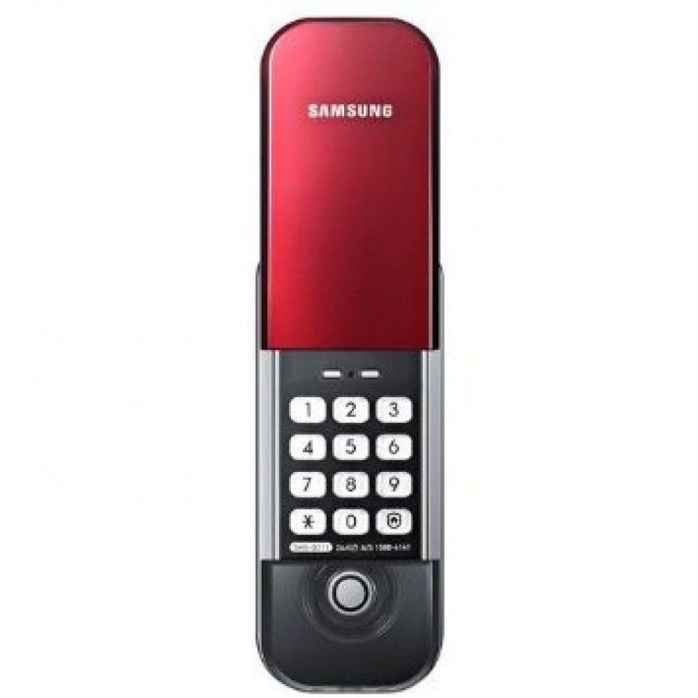 La nouvelle serrure code à écran tactile de Samsung SHS-D211XMR possède un lecteur de badge César ou code pour une utilisation des plus confortables.