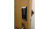 De l'extérieur, le verrou se déverrouille en rentrant un code, ou en passant un badge. 5 secondes après la fermeture de la porte, le verrou se referme.